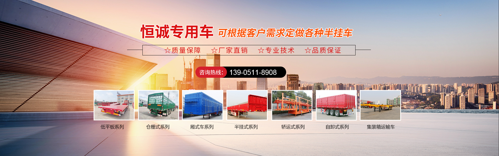 現有半掛車生產線,自卸車生產線,低平板生產線,轎運車生產線,垃圾車,洗掃車,清洗車,超大件運輸及特種車輛等100多種產品,可按需定制化生產,滿足個性化需求。全方位服務以及售后優勢